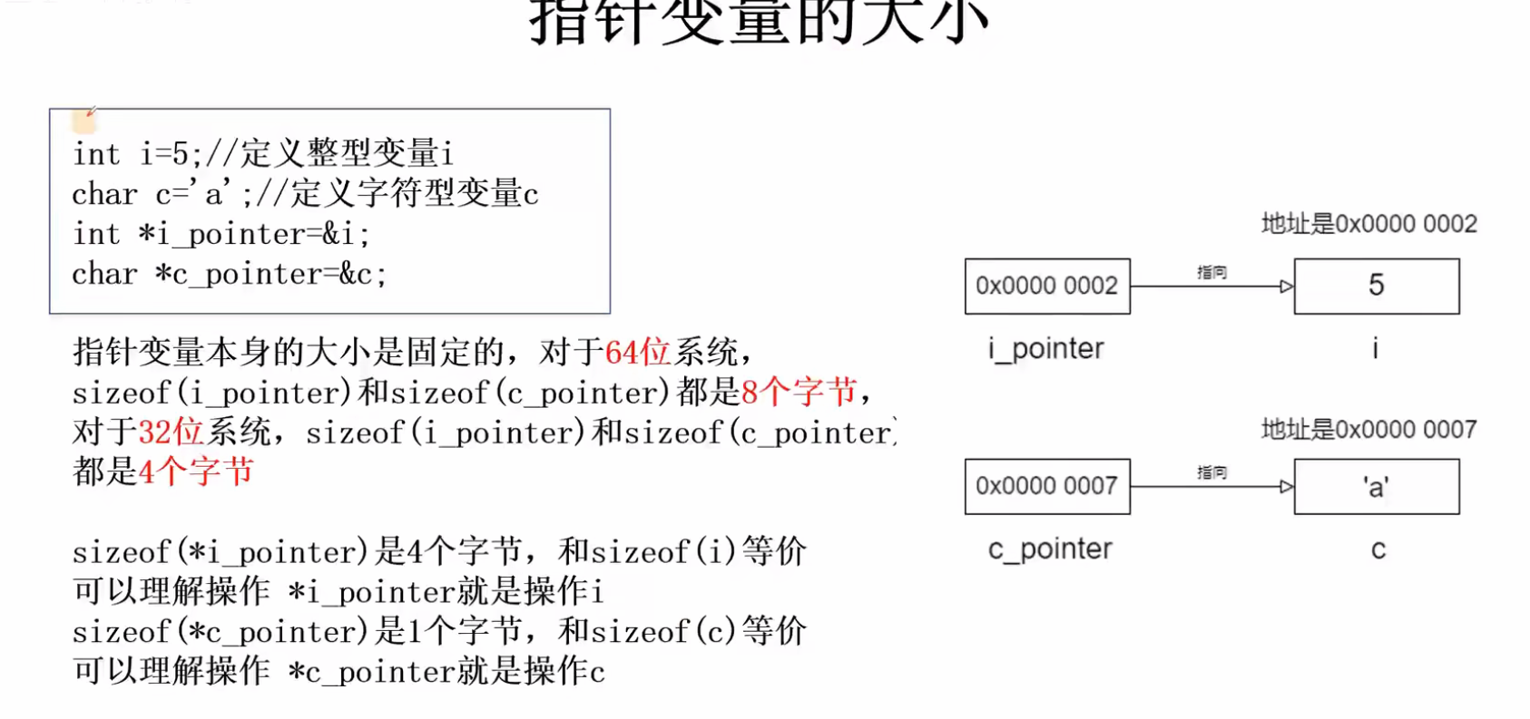注意!指针本身大小和其指向空间的大小,是两码事