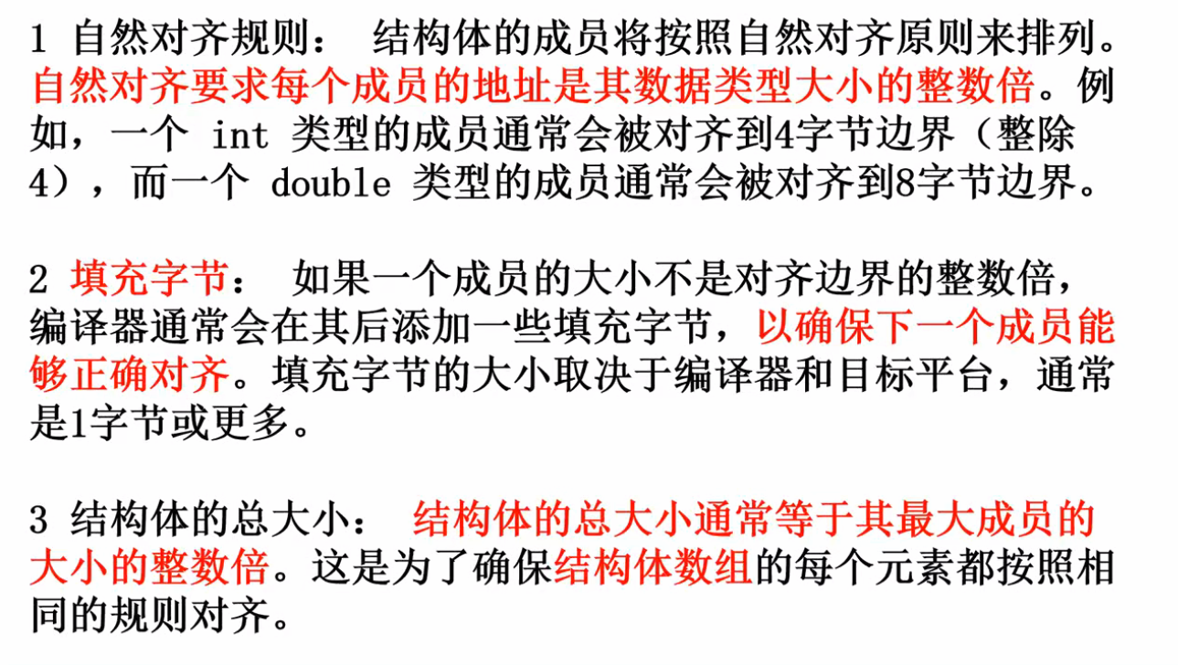 int main(){struct student_type1 s1={1,2,3};struct student_type2 s2={7,'m',8};printf("s1 size = %d\n",sizeof(s1)); //16printf("s2 size = %d\n",sizeof(s2)); //8return 0;