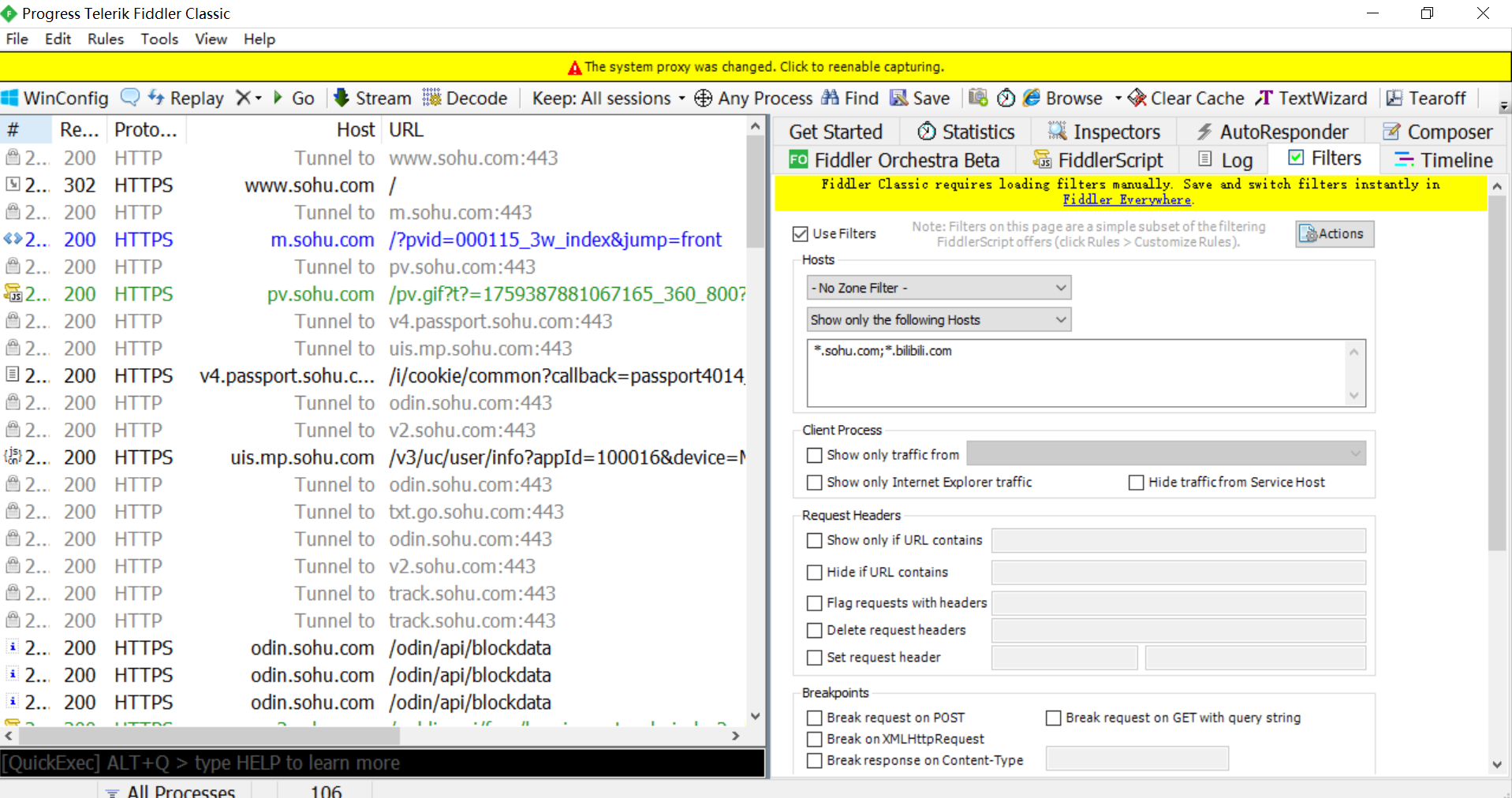 手机浏览器输入:https://www.sohu.com,手机可以正确打开网页,并且fiddler显示如下