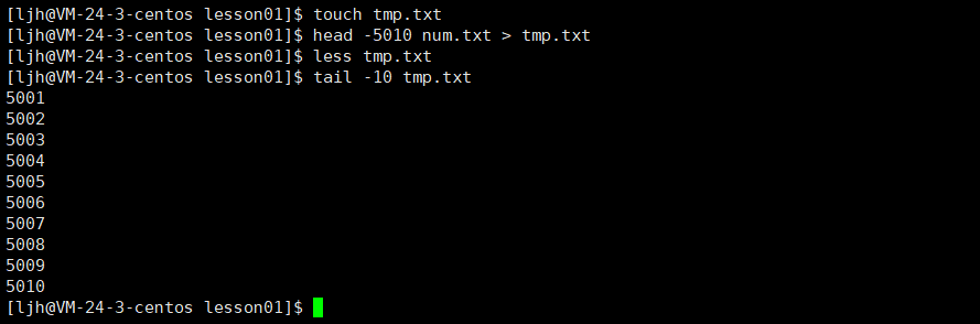 解释:我先把lesson01压缩到当前目录,最后再解压到当前目录的lesson02目录中,发现lesson01完全一致