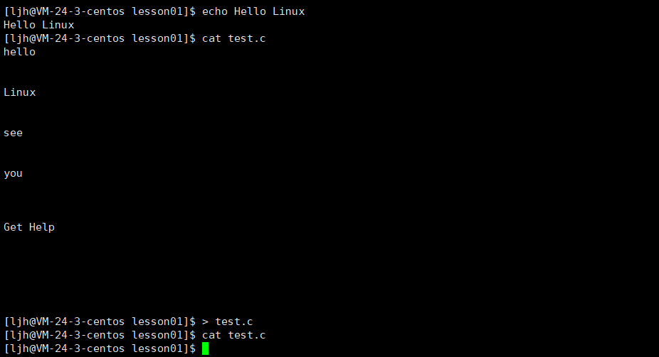 读取该文件内容并输出;第二个则是 cat