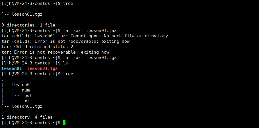 示例:查看 lesson01.tar.gz