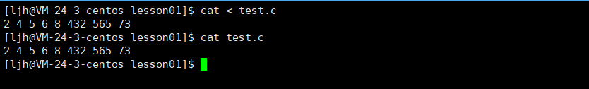 虽然下面指令的输出结果一样,但是实际上第一个是把文件的内容重定向到 cat