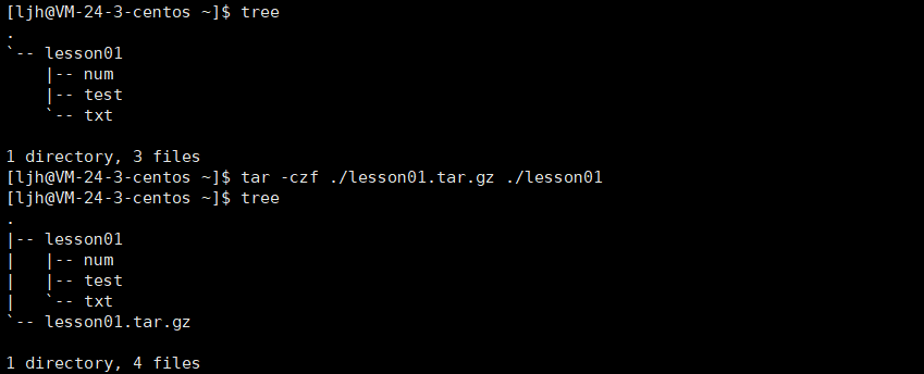目录打包压缩成 lesson01.tar.gz