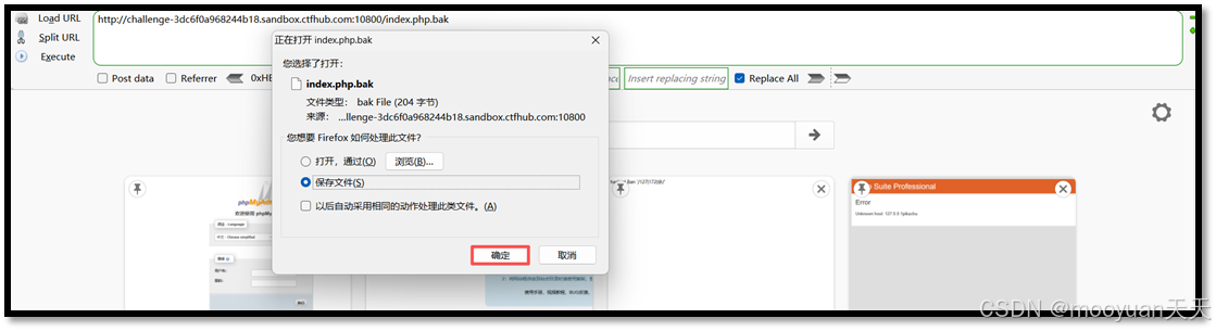 访问如上URL地址后页面提示是否下载index.php.bak文件,点击确认保存文件,如下所示。