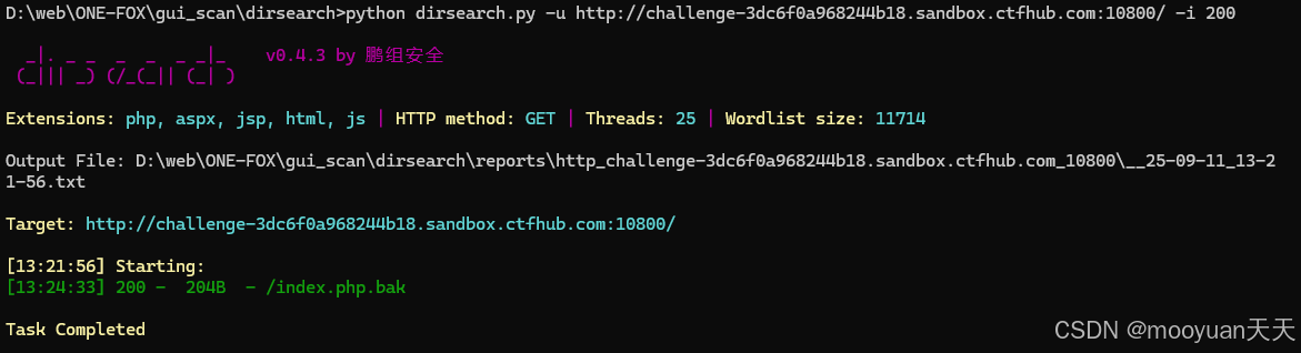 python dirsearch.py -u http://challenge-3dc6f0a968244b18.sandbox.ctfhub.com:10800/ -i 200