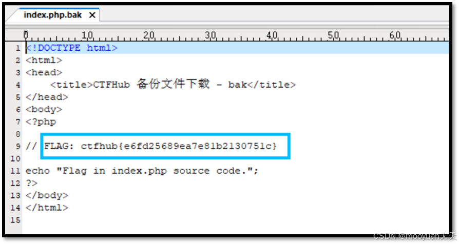 打开index.php.bak文件,即可查看到flag值,如下图所示。