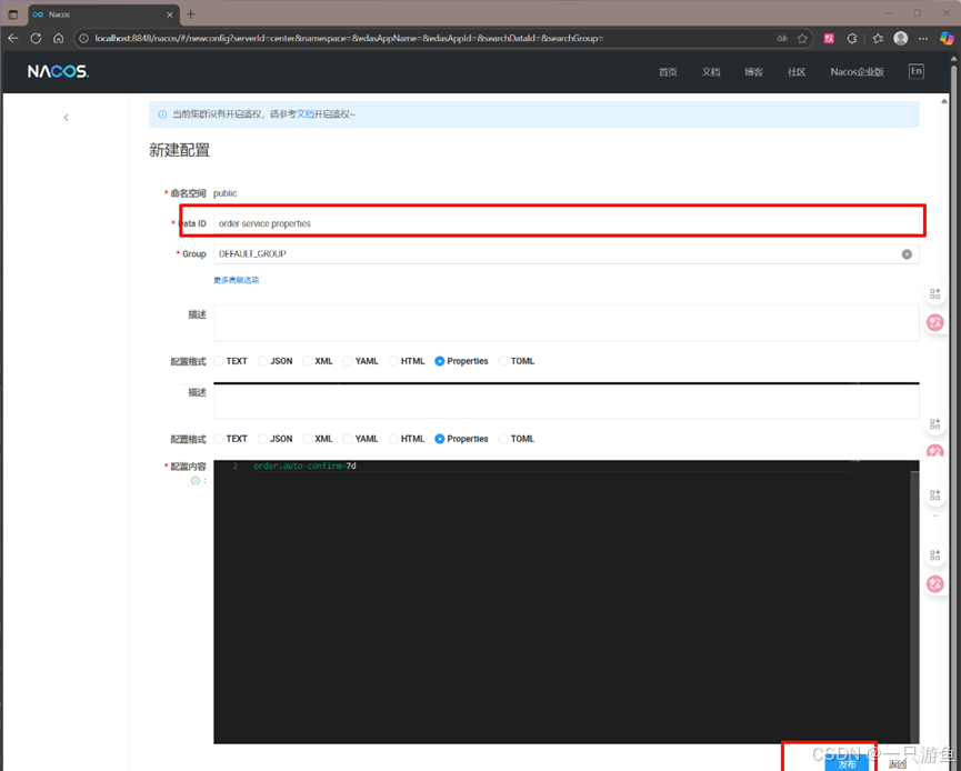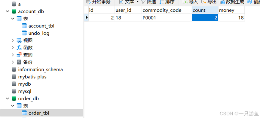 public OrderTbl create(String userId, String commodityCode, int orderCount) {//1、计算订单价格int orderMoney = calculate(commodityCode, orderCount);//2、扣减账户余额accountFeignClient.debit(userId, orderMoney);//3、保存订单OrderTbl orderTbl = new OrderTbl();orderTbl.setUserId(userId);orderTbl.setCommodityCode(commodityCode);orderTbl.setCount(orderCount);orderTbl.setMoney(orderMoney);//3、保存订单orderTblMapper.insert(orderTbl);return orderTbl;