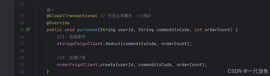 AccountFeignClient accountFeignClient;@Transactional //本地事务 防止订单创建成功,库存扣减失败 无法回滚