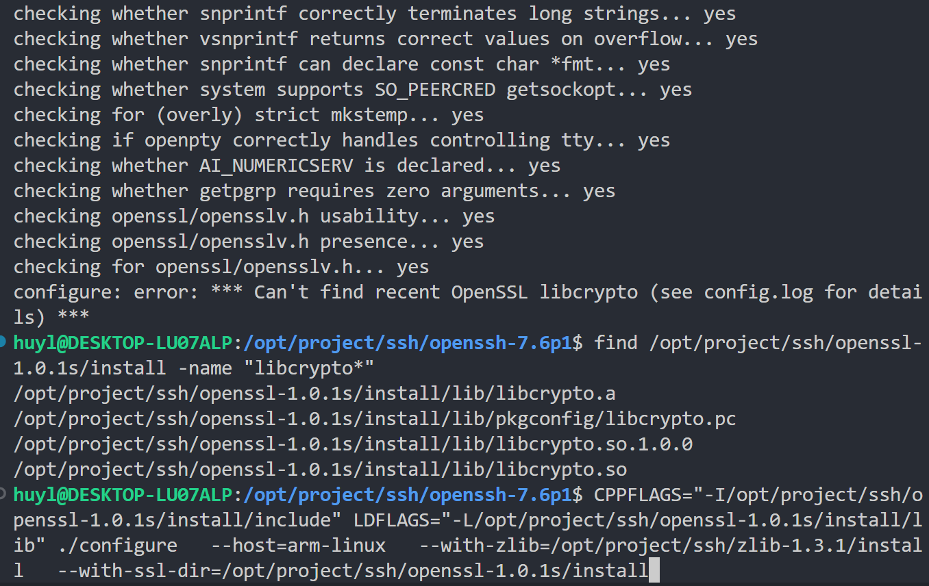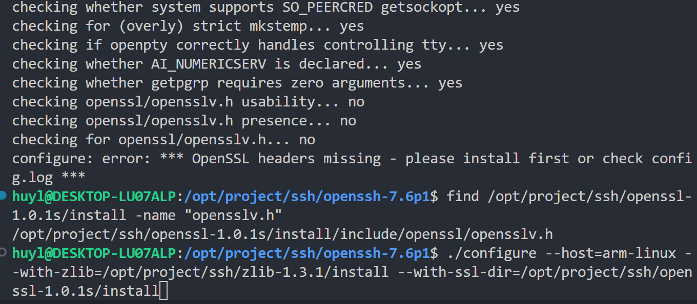 因为你会发现它报错信息提到的这个文件它确实是存在的,但是 OpenSSH 它就是找不到。你死都不会想到他是因为你交叉编译环境没有设置好导致的。