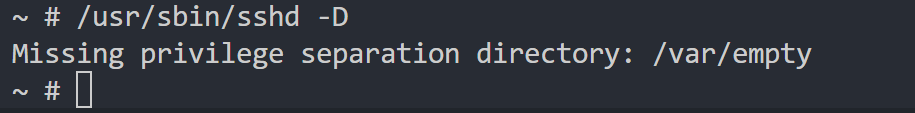 这就表示 SSH 运行时的 privilege separation 目录缺失,sshd 跑不起来了