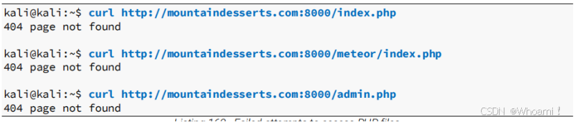 再次:使用curl来确认admin.php和 index.php文件是否仍然存在。以下反应说明php文件不存在,合理推断网页服务器不再使用PHP。