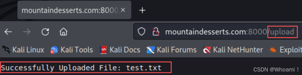 我们在网页的上传入口尝试上传一个文本文件,并启动Burp来捕获请求。上传来自上一节的test.txt文件。上传成功!