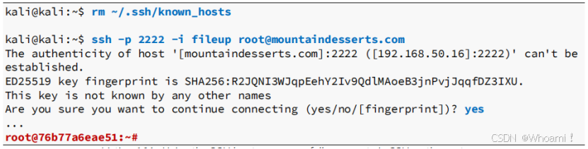 rm ~/.ssh/known_hosts# 在攻击主机kali上,使用-i参数指定我们的私钥文件
