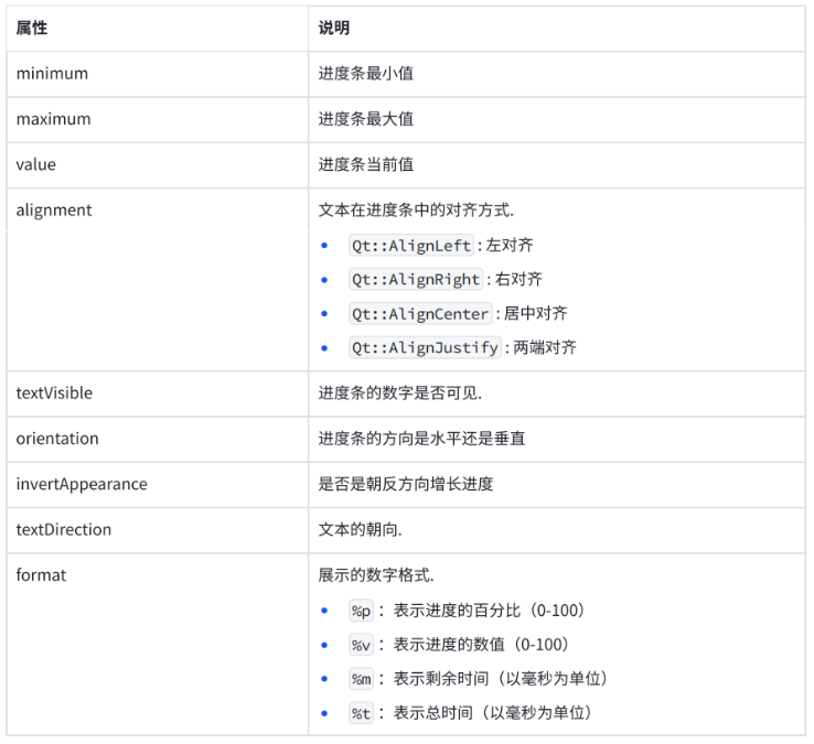 在 Qt 中,QProgressBar 是用于显示任务进度的控件,常用来直观呈现操作的完成情况。比如执行某些任务时,不能让用户无端等待,我们需要告知用户当前是需继续等待还是程序已卡住,以便用户直观了解程序的运行状态,下面提供 QProgressBar 相关的 API,具体内容如下所示: