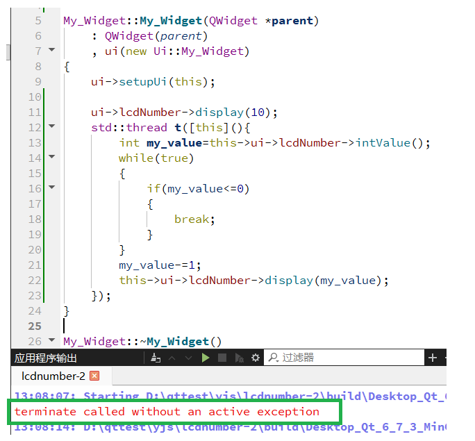 我们可以看到,当在构造函数中另起线程并使用 lambda 表达式作为回调函数时,程序会出现终止报错,这是为什么呢?