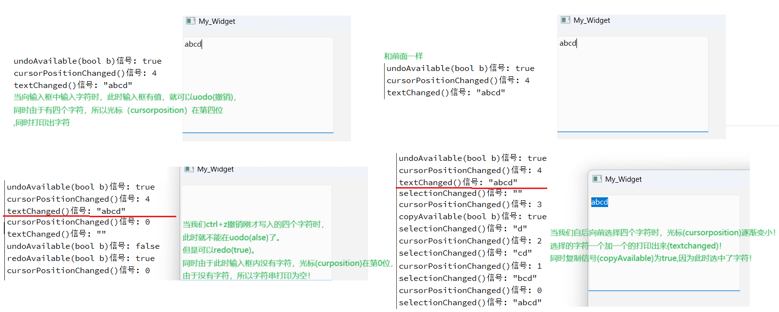 {qDebug()<<"undoAvailable(bool b)信号:"<<b;