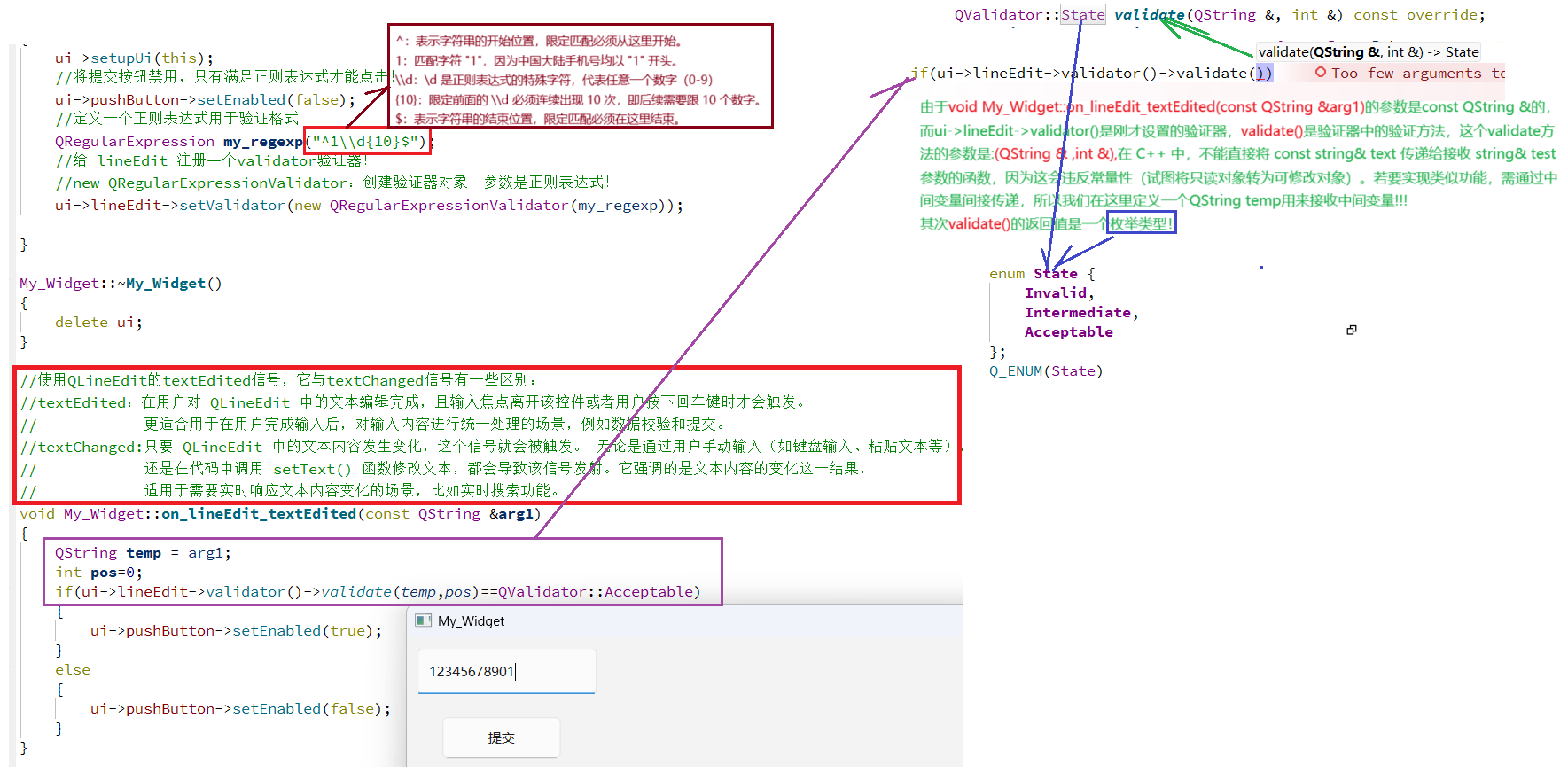 使用正则表达式来限制格式的样例如上所示,都在图中,下面我们再给出一个简单的例子,继续学习使用textEdited信号,具体如下所示: