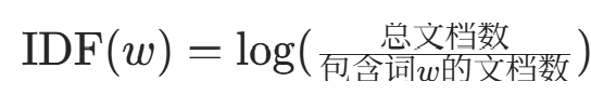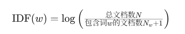 IDF(逆文档频率,Inverse Document Frequency):衡量词在 “所有文档” 中的 “全局重要性”,抑制在多数文档中出现的高频词: