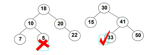 - 若它的右子树不为空,则右子树上所有节点的值都大于根节点的值