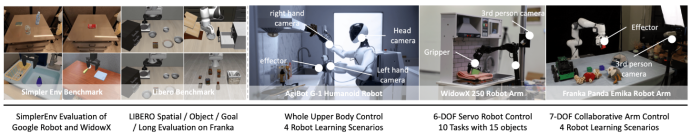 性能领先:在LIBERO基准测试中成功率提升4.4%,Simpler基准测试提升 25.9%,真实世界部署中提升12.9%,刷新同类模型最佳表现。
