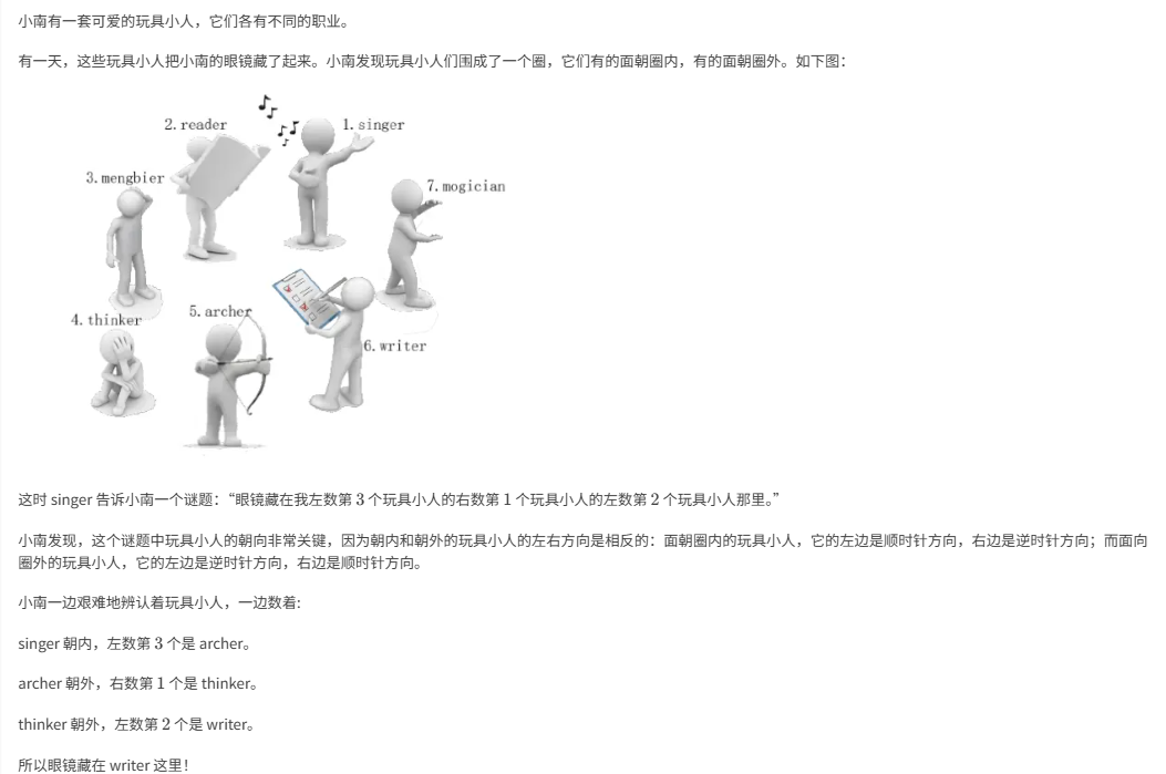 题目的意思是:现在有n个人围成一个圈,但人的方向有两种 朝里和朝外