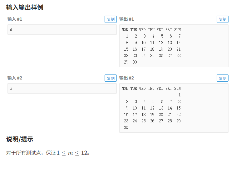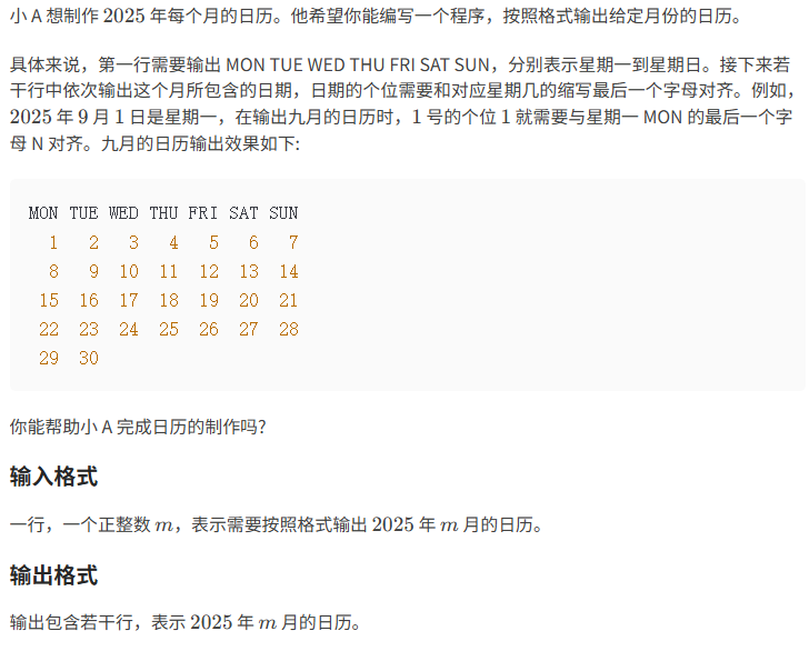 题目的意思是:给出了2025年9月的日历,求m月的日历