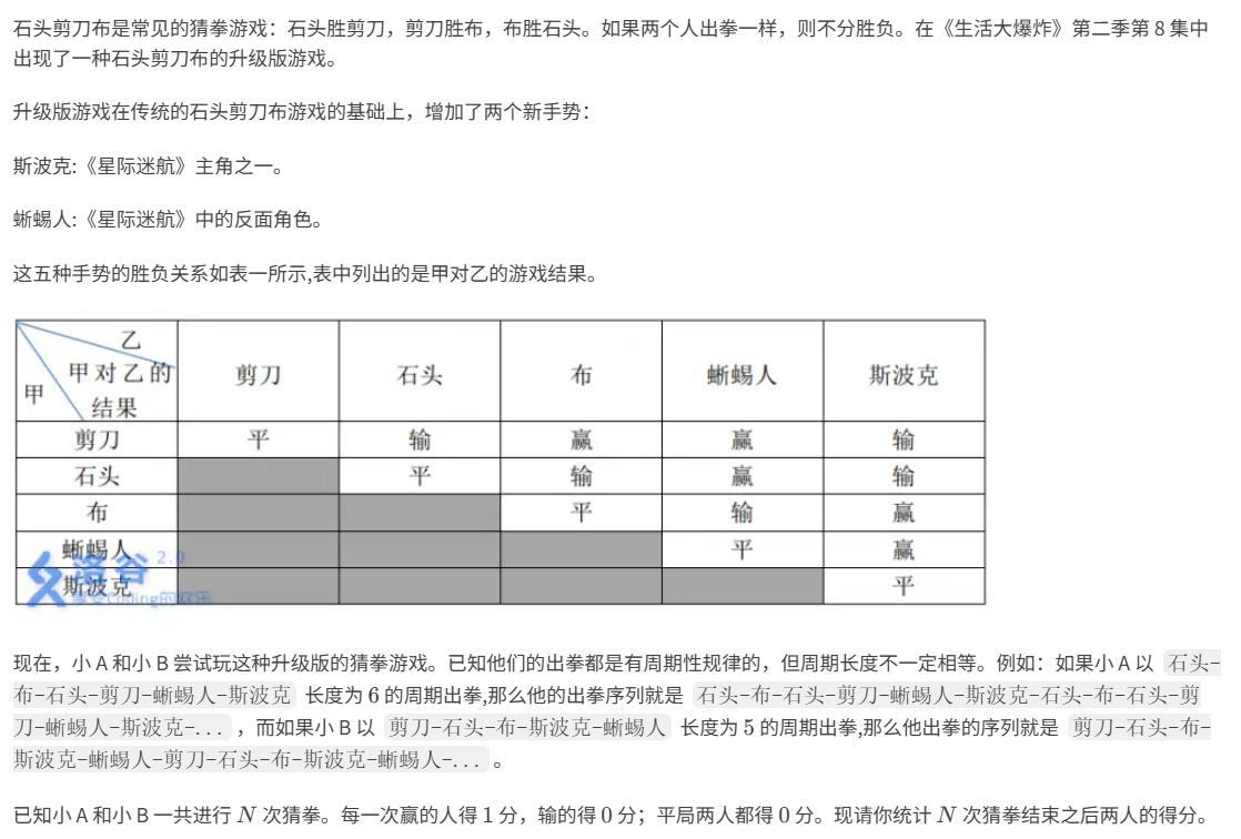 题目的意思是:有一个进阶版的剪刀石头布,由A和B进行比赛