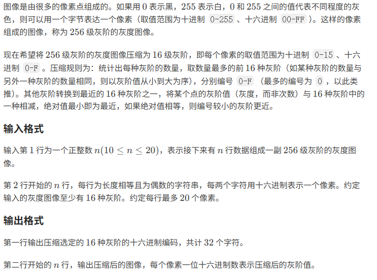 struct Node{int data;//10进制string s;//灰阶 int number=0;//个数 }arr[260];//使用0-255这个部分 string ss[25];//存储输入进来的数据 //比较的仿函数
