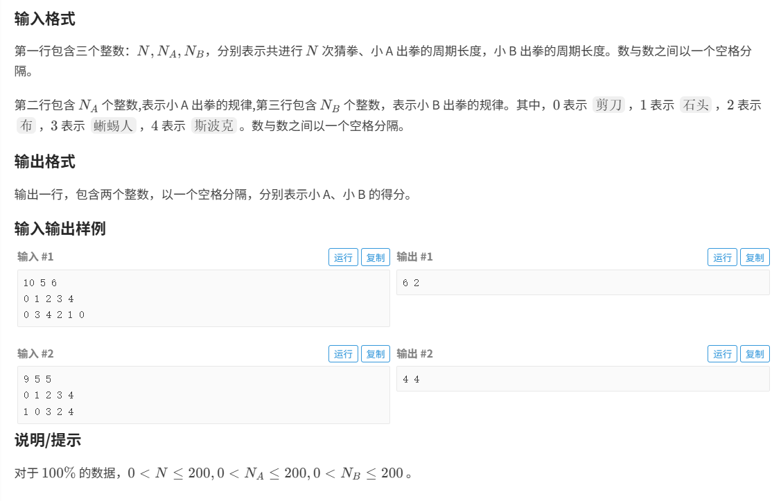 首先 A和B都是有出拳规律的,会按照一定的规律进行出圈(可以使用数组保存)