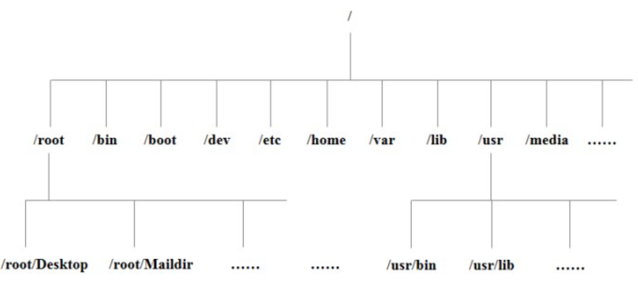 Linux系统中,磁盘上的文件和目录被组成一棵目录树,每个节点都是目录或文件。