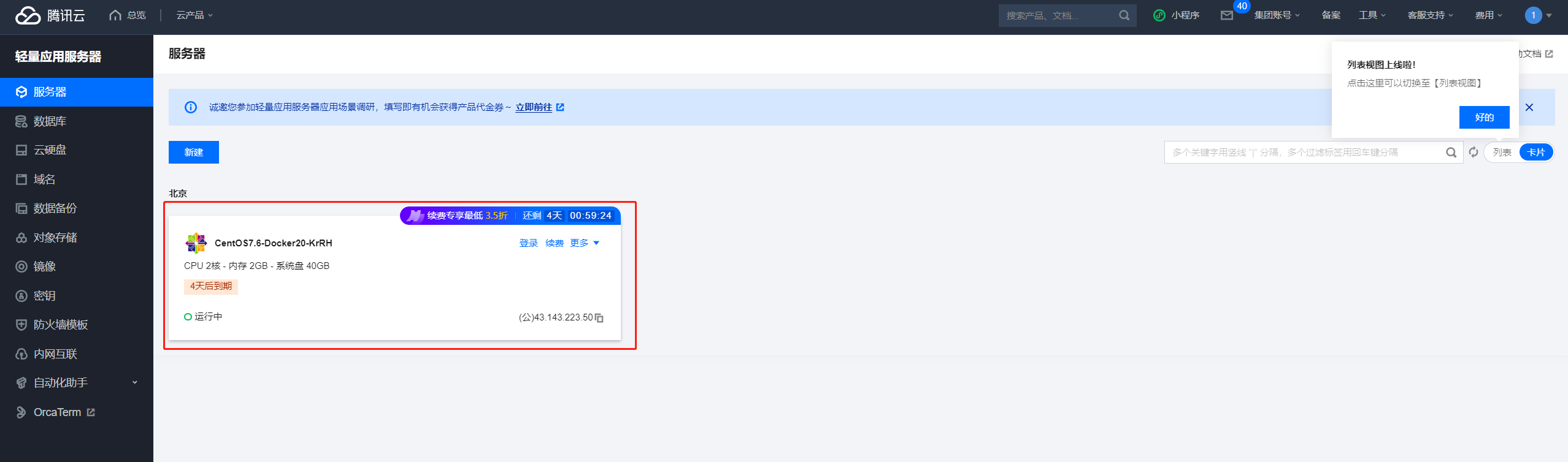 3.购买完成之后,可以直接在控制台中找到自己买的服务器,点进去之后能够看到服务器的IP地址。