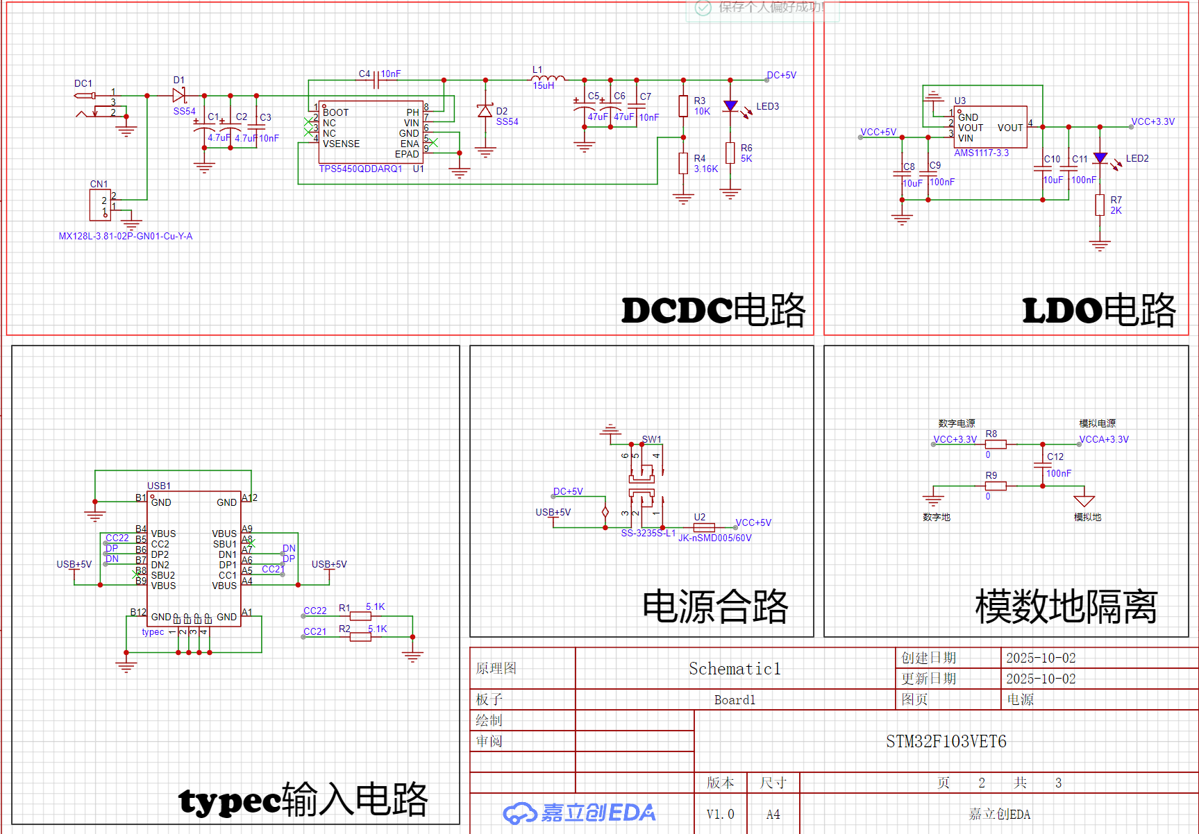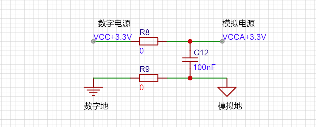 隔离目的主要是防止数字电路对模拟电路产生影响造成模拟信号失真,这里采取单点接地原理隔离。