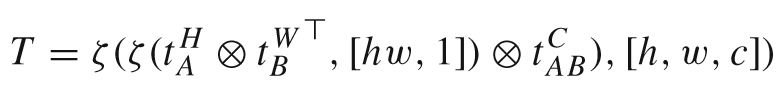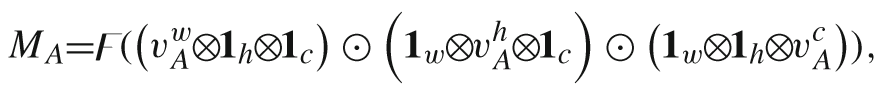 将文本特征重塑到各个维度上便于和视觉特征进行矩阵相乘操作得到融合的特征v,进而得到权重M。