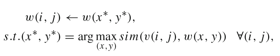 为了将文本和视觉特征进行匹配,计算每个像素的文本特征w和视觉特征v之间的相似度,每个像素点的文本特征值由与该像素点视觉特征最相似的文本特征赋值: