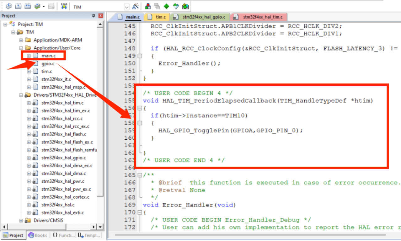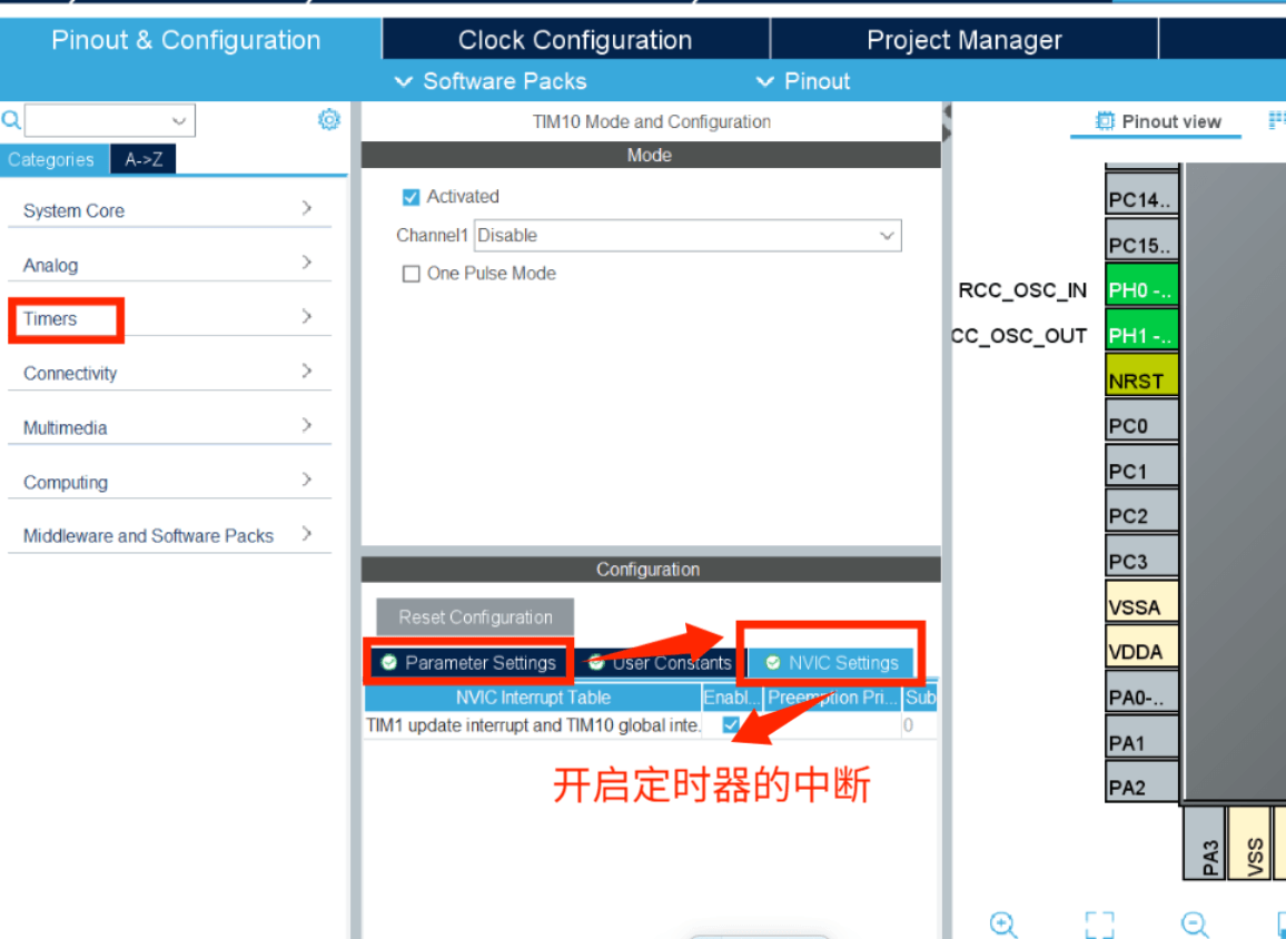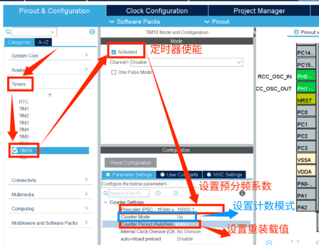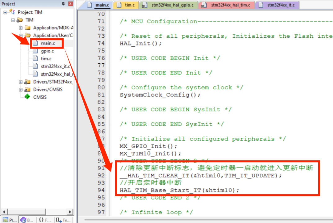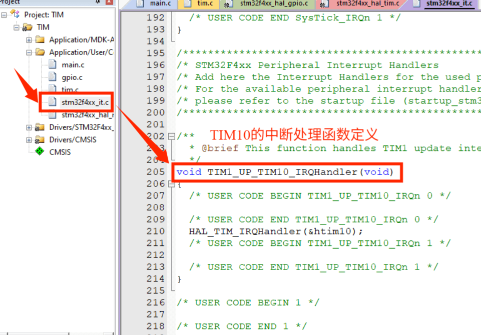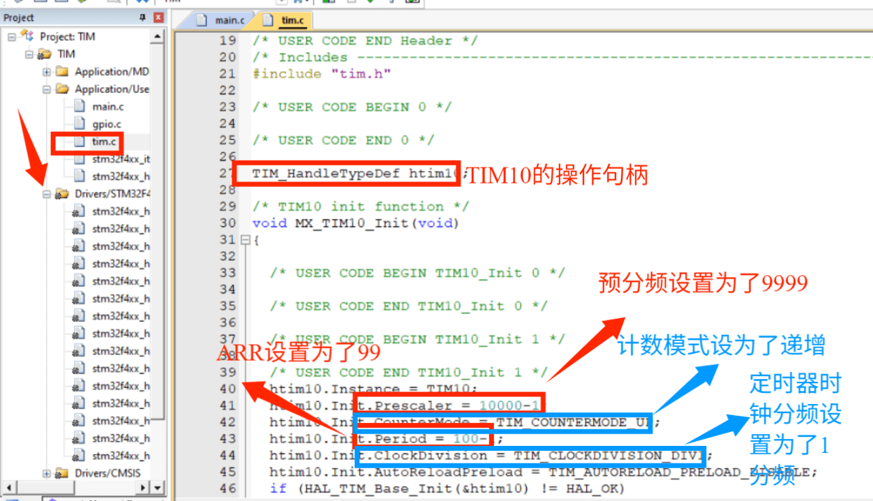 这里以用TIM10产生一个10ms中断翻转LED为例: