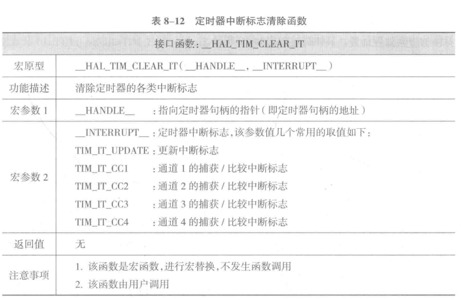 该函数用于清除定时器的各类中断标志,采用带参数的宏实现(宏函数),与普通函数相比,宏函数省去了函数调用的过程,执行效率较高