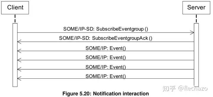 - SOME/IP 协议应支持事件通信,即由服务提供者单向发出的通信,支持周期性发送事件或在事件状态改变时发送。