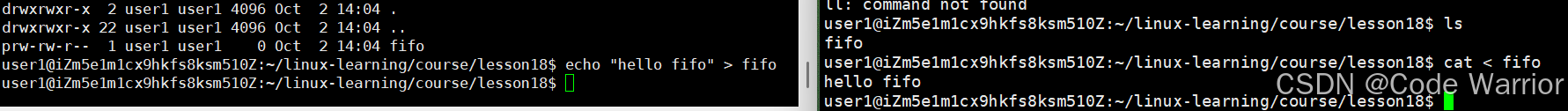 -rw-r--r-- 1 user user 450 Oct 2 14:30 clientPipe.c # 客户端代码