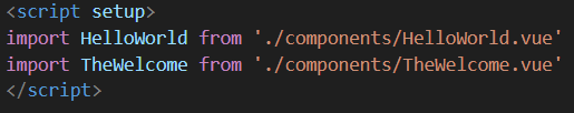 比如,在App.vue组件中导入HelloWorld组件和TheWelcome组件: