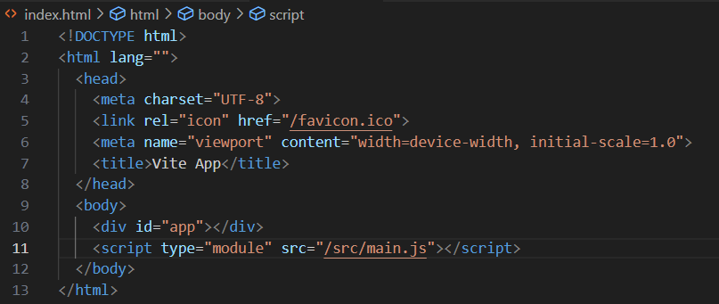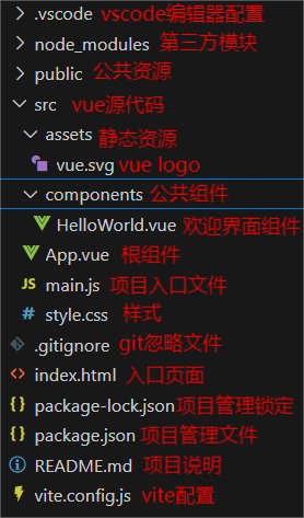 vue相关代码都在src目录下,通过vite项目构建工具打包后,转化为浏览器能识别的文件格式:html、css、js,通过index.html页面可以看到打包后的页面。