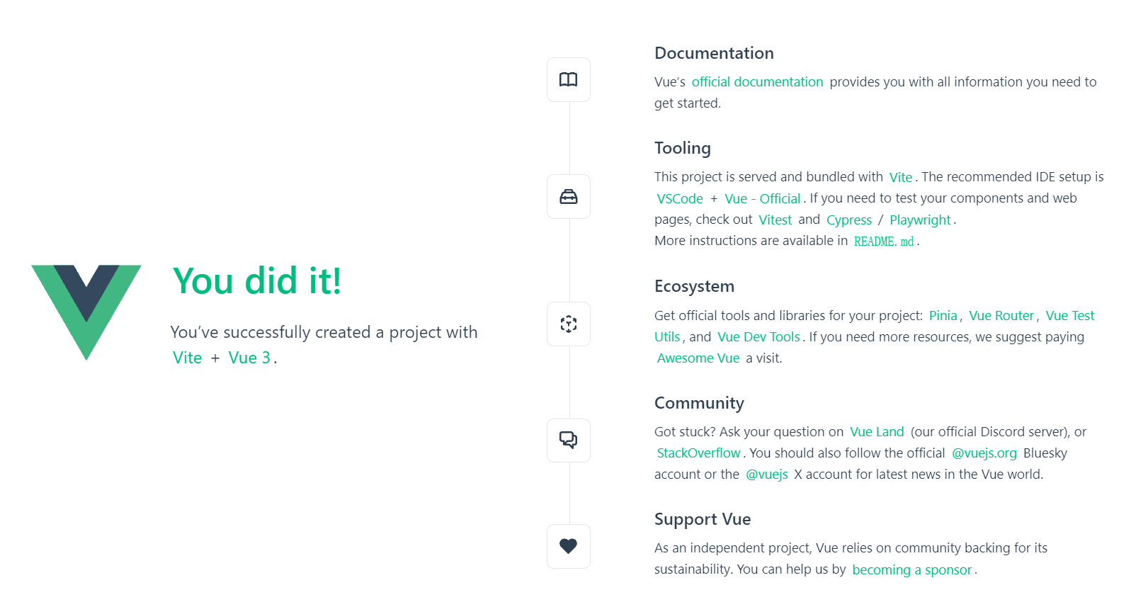 访问http://localhost:5173/,见到如下欢迎页面说明项目创建并启动成功: