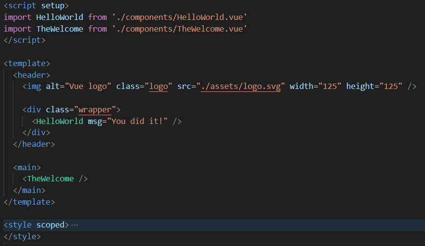 而HelloWorld组件和TheWelcome组件作为子组件,App.vue组件作为父组件,父组件就可以使用子组件。
