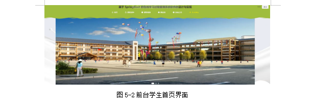 当学生注册登录进入的网址后,首先看到的就是首页界面。在这里,学生能够看到在线学习过程管理系统软件的导航栏显示首页、课程资料、课程视频、测试卷、系统公告、个人中心等。系统首页界面如图5-2所示:
