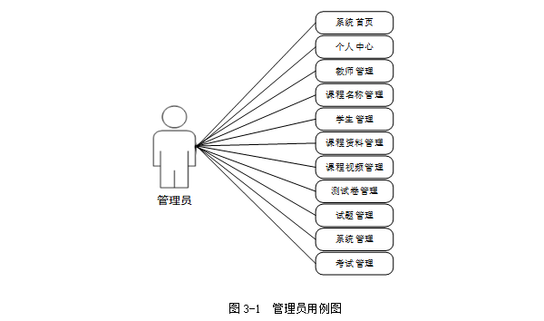 管理员登录系统后,可以对系统首页、个人中心、教师管理、 课程名称管理、学生管理、课程资料管理、课程视频管理、测试卷管理、试题管理、系统管理、考试管理等功能进行相应操作,如图5-8所示。