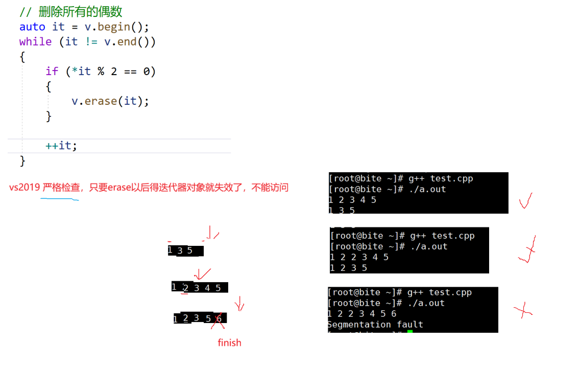 2.3 Linux下,g++编译器对迭代器失效的检测不严格