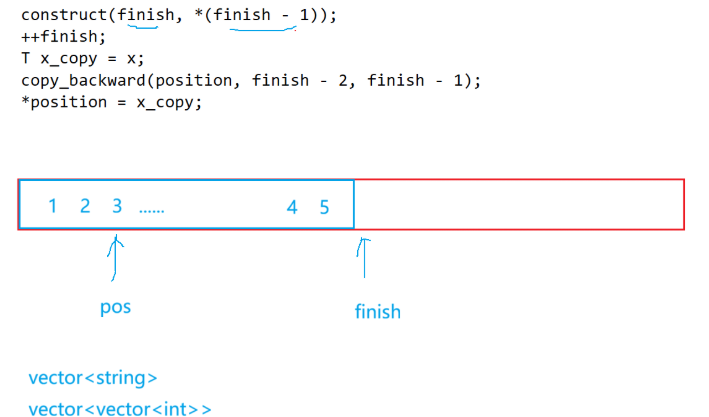 {bit::vector<int> v;v.push_back(1);v.push_back(2);v.push_back(3);v.push_back(4);v.push_back(5);Print(v);v.erase(v.begin());Print(v);auto it = v.begin() + 2;//insert以后it是否失效? 失效,不能访问,访问结果未定义v.erase(it);Print(v);