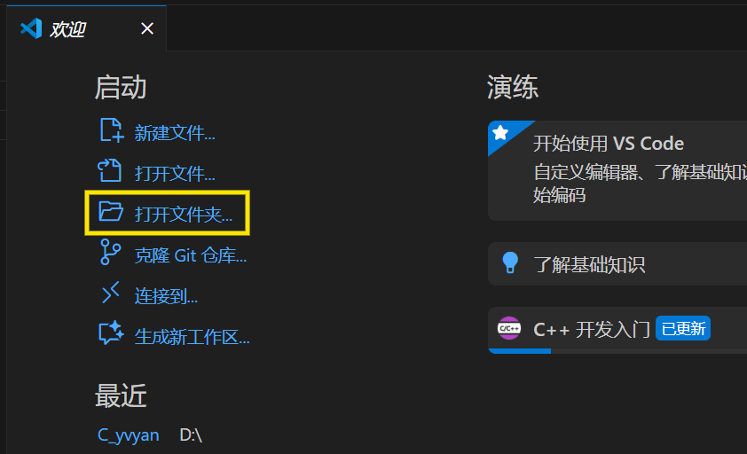 打开VScode,点击打开文件夹: