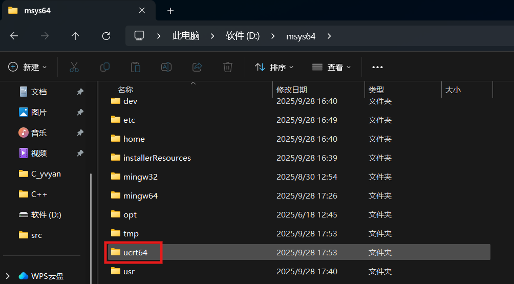 打开msys2文件夹,找到ucrt64