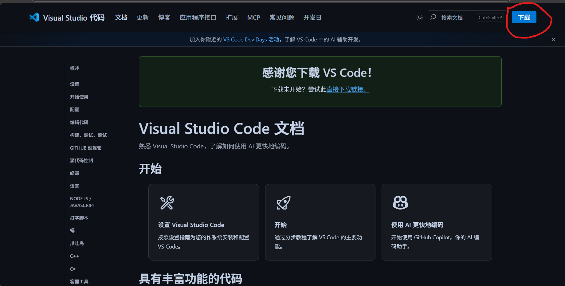 VScode官网链接:Visual Studio Code - 代码编辑。重新https://code.visualstudio.com/